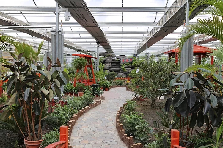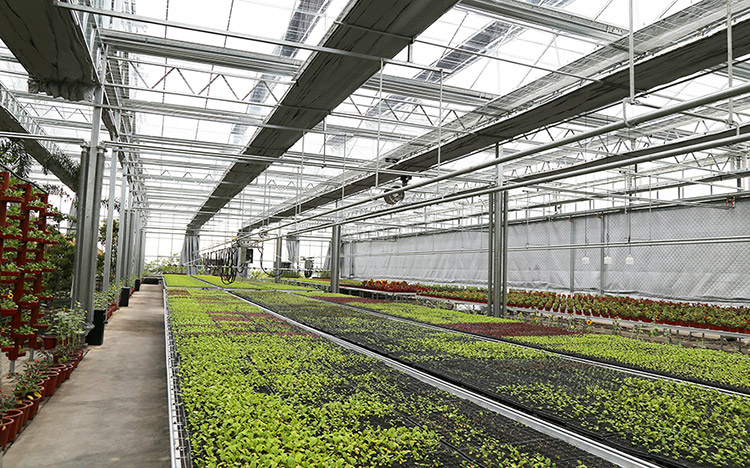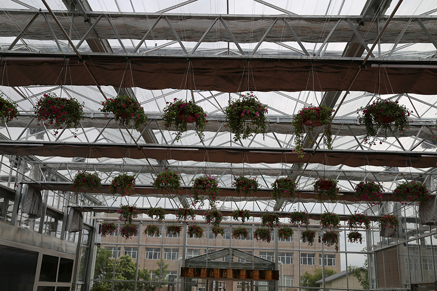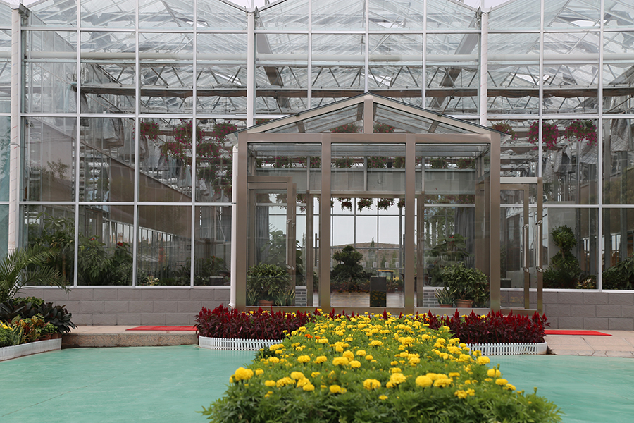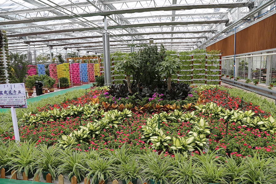 該智能溫室大棚占地約6000平方米,分為一號(hào)廳和二號(hào)廳。其中一號(hào)廳是新建的有錯(cuò)層的玻璃溫室,分為盆栽花卉、盆栽果樹區(qū)、沙生植物區(qū)、熱帶風(fēng)情區(qū)、家庭園藝區(qū)等功能區(qū)。二號(hào)廳由舊溫室改造而成,頂部為陽光板,四周立面為玻璃,配置了智能控制系統(tǒng),有無土栽培區(qū)、育苗區(qū)、采栽體驗(yàn)區(qū)等功能區(qū)。智能溫室全部配備了內(nèi)、外保溫系統(tǒng),冬季保溫,比普通溫室更節(jié)能。溫棚內(nèi)移動(dòng)苗床一次育苗30萬株,可供給巴彥霍德406座溫棚,一定程度上帶動(dòng)了農(nóng)民增收。不論是熱帶植物、水果還是沙漠植物,在這里你可以一覽無余,一年四季感受綠色勃勃生機(jī)。
