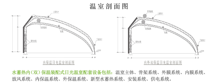 2、溫室晴天夜間室內(nèi)外最大溫差達(dá)38℃,可在最低氣溫-30℃的地區(qū)不加溫生產(chǎn)果菜類蔬菜,具有良好的生產(chǎn)性能。