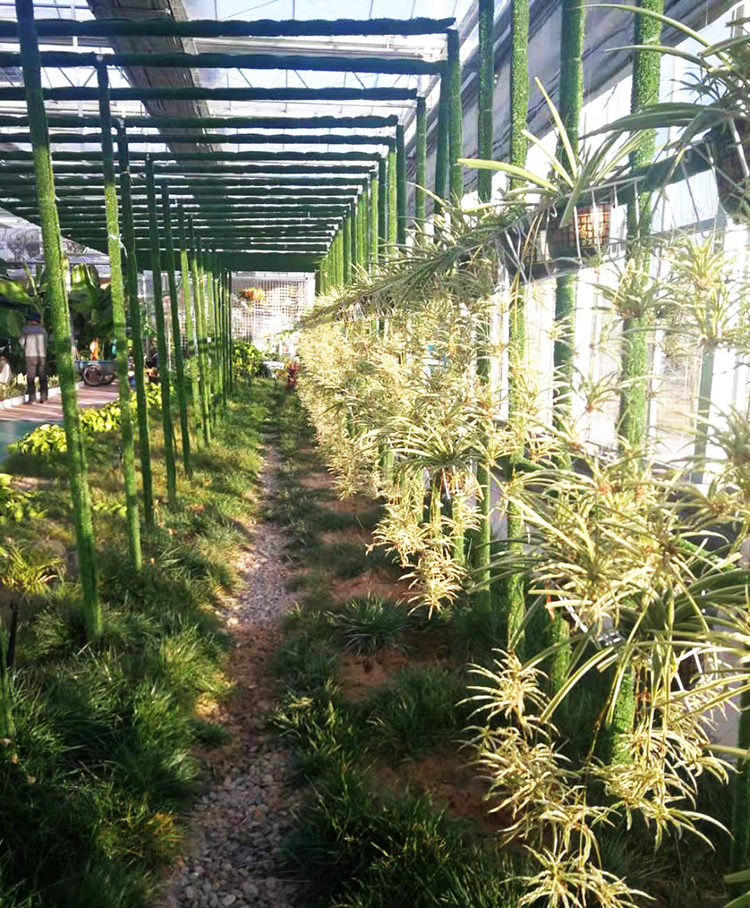 該智能溫室占地約6060平方米,種植的分別有盆栽花卉區(qū)、盆栽果樹區(qū)、沙生植物區(qū)、熱帶風(fēng)情區(qū)、家庭園藝區(qū)、無(wú)土栽培區(qū)、育苗區(qū)、采栽體驗(yàn)區(qū)等功能區(qū)。溫棚內(nèi)移動(dòng)苗床一次育苗30萬(wàn)株,可供給巴彥霍德406座溫棚,一定程度上帶動(dòng)了農(nóng)民增收。不論是熱帶植物、水果還是沙漠植物,冬天在這里你可以一覽無(wú)余,到處綠色生機(jī)勃勃。