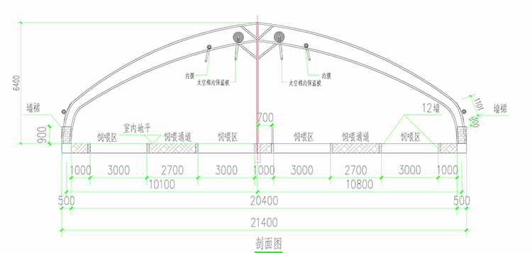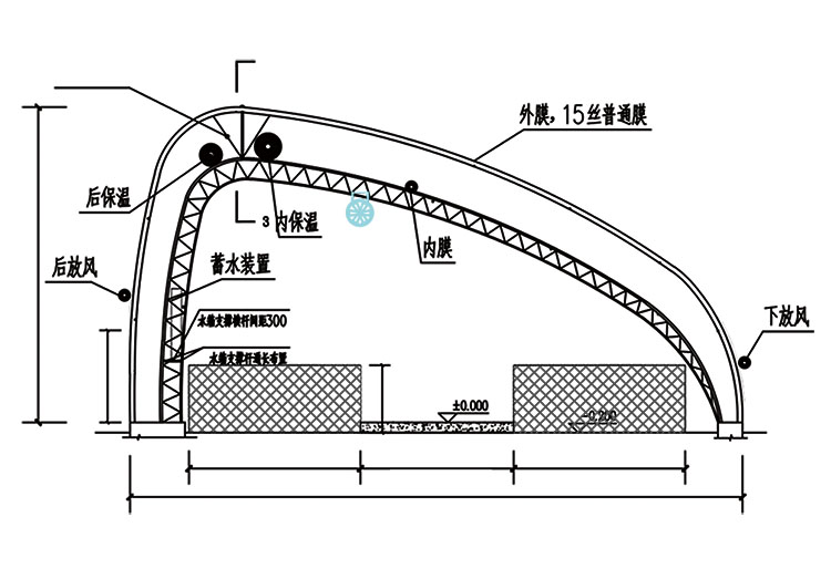 新型陽光養殖棚舍系列產品剖面圖