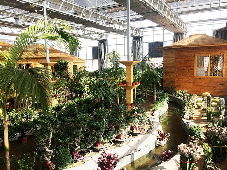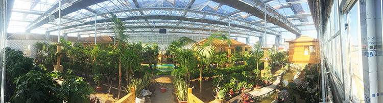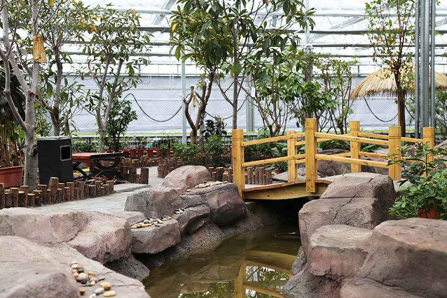綜合型溫室是在溫室中人為制造大自然環境,山水、瀑布、花草、果木等映入眼簾,是以上幾種溫室開發模式的綜合。包括以旅游接待服務為主要功能的各種溫室,由于溫室內環境的可控制性,可種植不同氣候地區的以及反季節植物,提供田園農業游、園林觀光游、水果蔬菜的采摘等務農體驗游活動,以及以現代高科技農業展示、科普教育等主題的農業科技游。綜合型溫室通常以鄉村環境、田園風光為大背景,內部空間的功能設置可以由農業向復合型休閑、會議度假、康療體檢等延伸,形成一站式溫室休閑綜合體的概念。如內蒙古阿拉善大漠綠苑智能溫室。