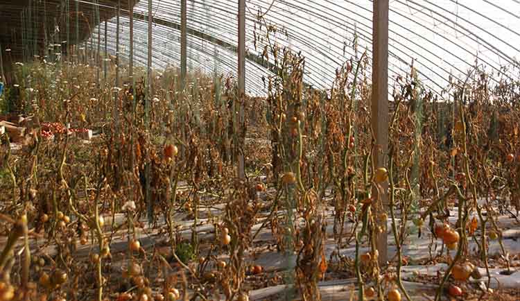 (其他普通外保溫溫室室內(nèi)溫度過低導致作物的根系停止生長,作物變黃枯萎,逐漸死亡)